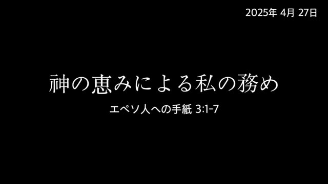 2025/04/27   エペソ人への手紙3:1-7 ‘神の恵みによる私の務め' (説教:ジョン・ハンジョ牧師)